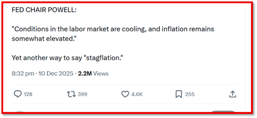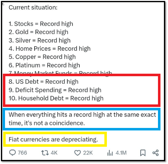 Questa visione è particolarmente rilevante nel contesto dei mercati dei prestiti overnight. Il regime di "ampie riserve" a cui si fa riferimento sopra è la quantità di liquidità del sistema finanziario che consente alla Fed di controllare i tassi overnight nonostante la pressione al rialzo su tali tassi derivante dall'enorme leva finanziaria del sistema. Ma a volte è difficile distinguere il controllo dei tassi di interesse a breve termine, che è la politica monetaria, dalla soppressione della volatilità immettendo liquidità nel sistema, perché altrimenti l'intera mostruosità sovraindebitata potrebbe esplodere, il che è solo un tentativo di ripulire il proprio pasticcio. L'aspetto perverso di tutto questo, sostiene il mio corrispondente, è che l'obiettivo della politica monetaria doveva essere l'economia reale. Ora l'obiettivo è e deve essere il sistema finanziario.