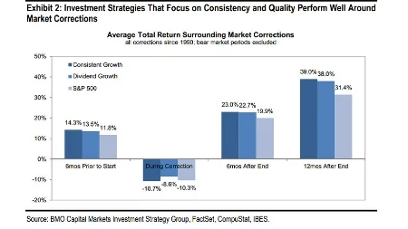 Il rischio più grande, tra i tanti rischi che in questo momento pesano sul futuro (di breve e di medio termine) di tutti i portafogli "ad asset allocation", i tradizionali portafogli con un tanto di azioni ed un tanto di obbligazioni, è la compiacenza. I fatti di mercato del mese di agosto sono stati commentati, da molti media ma soprattutto da molte banche di investimento come "l'inizio di una correzione": il messaggio è che si tratta di un episodio che non lascerà effetti permanenti, di una discasa "del 10% o poco più" che presto lascerà spazio ad una nuova fase di rialzo. Le eccezioni sono poche: solo sul New York Times, ieri sera, abbiamo letto che questo movimento di agosto "potrebbe essere la fine di un rally durato sei anni": ed è proprio questa unanimità di giudizio, che a noi di Recce'd sembra sospetta, e che fa pensare ad una diffusa compiacenza. Troviamo singolare che a tutti sfugga che questa situazione in cui ci troviamo non ha alcuna somiglianza con le "correzioni" precedenti, e che quindi non c'è la minima certezza di un ritorno "nel trend", non c'è alcuna garanzia che "i mercati nel medio termine tornino a salire". A Recce'd siamo consapevoli del fatto che buona parte dell'industria dei servizi del risparmio è costretta a questo ottimismo (ottimismo che altri hanno definito "di maniera") perché i prodotti che le Reti vendono performano solo se i maggiori indici salgono. Sono prodotti di investimento che non aggiungono valore per chi ci investe, e salgono solo per "l'effetto-marea", ovvero quando sale tutto e quindi salgono tutti. Ma anche così: come si può fingere di non capire che quello che è in gioco, in queste settimane, è una ridefinizione dei rapporti tra asset finanziari ed economia reale? E quindi a suggerire ancora ai Clienti la tradizionale "asset allocation" e strategie di investimento di tipo buy-and-hold, da rivedere una volta ogni sei mesi o peggio un anno? Vogliamo offrire un esempio concreto, utilizzando il grafico qui sotto (che è solo un esempio, uno fra le centinaia di questo tipo): il grafico racconta che una strategia di investimento nell'azionario che privilegia sia i titoli ad alto dividendo sia i titoli con una maggiore regolarità degli utili ha fatto migliori risultati (dal 1990 ad oggi) dell'indice di riferimento (lo S&P 500). Vogliamo mettere in evidenza due cose: i dati che il grafico presenta sono ottenuto escludendo i "bear markets" dopo il 1990 (e già questa è una scelta che toglie significato); e poi che, implicito nel messaggio che esce dal grafico, c'è il fatto che lo S&P 500 continuerà sempre a salire. Quindi, in estrema sintesi, sarà sufficiente stare fermi con il proprio portafoglio per guadagnare soldi. Niente di meno vero: quel mondo è finito, e tutte le strategie che si affidano alle medie storiche dei rendimenti, e utilizzano una asset allocation più o meno statica, sono strategie perdenti.