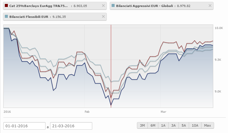 Uno degli indici Fideuram per la categoria dei Fondi Bilanciati, e precisamente il Bilanciati Aggressivi EUR, era arrivato a perdere più del 10% dopo soli 40 giorni di calendario nel 2016. Il 10% in 40 giorni: per un portafoglio bilanciato, si tratta di un risultato inaccettabile.