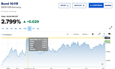 Anzi: nel 2025, come vedete bene qui, sul Bund tedesco (la famosa … “ancora di salvezza” per tanti investitori, poco aggiornati e poco informati) nel 2025 sono state più le vendite che gli acquisti.