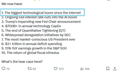Si tratta di argomenti molto diffusi: si tratta di argomenti utilizzati ogni giorno, allo scopo di gonfiare e rigonfiare la “bolla di tutto”. Che, come abbiamo già spiegato in dettaglio nella serie Detox, non è “la bolla di AI”, e non è la bolla del 2007-2009, e non è la bolla del 2009-2003. E’ invece una cosa più grande e più complessa, le cui ricadute saranno decisamente più ampie, rispetto a ciò che noi tutti abbiamo visto nei due episodi appena citati.