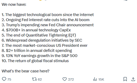 Tutto il resto? E’ solo contorno, luci abbagliati, cortina fumogena. Il contorno (incluso AI) per tutti voi investitori conta nulla. Ha contato nulla già per tutto il 2025.