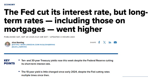 Le proiezioni dei funzionari della Fed pubblicate mercoledì su crescita, inflazione e occupazione sono rimaste pressoché invariate rispetto a giugno. Mentre all'epoca solo una risicata maggioranza aveva previsto due tagli, mercoledì una risicata maggioranza ne ha previsti tre per il resto del 2025, incluso quello di questa settimana. Questa variazione indica che tagli consecutivi dei tassi alle riunioni della Fed di ottobre e dicembre sono diventati più probabili.