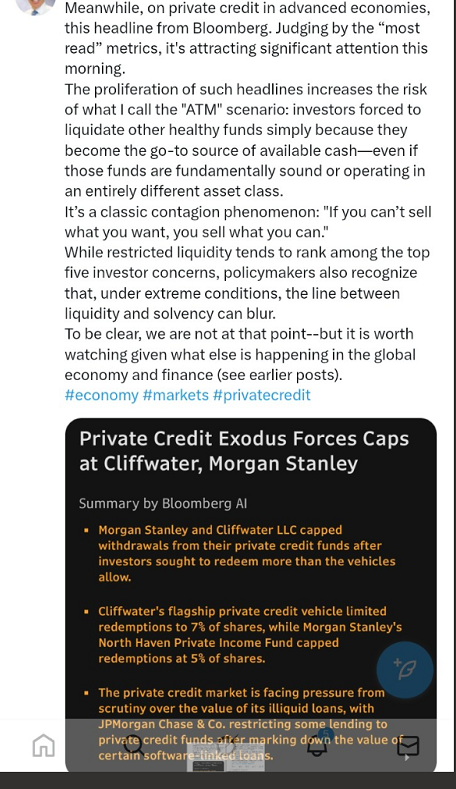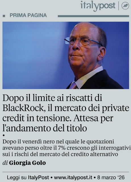 Pochi giorni prima, il gestore patrimoniale alternativo Blackstone aveva annunciato di aver aumentato il limite massimo di rimborso del suo Blackstone Private Credit Fund per far fronte a un numero record di richieste di rimborso.