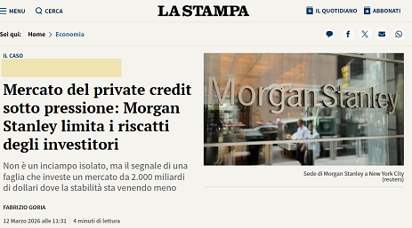 I campanelli d'allarme per questi due colossi arrivano dopo un evento simile avvenuto il mese scorso presso il gestore patrimoniale alternativo più piccolo Blue Owl, e dopo i fallimenti del fornitore statunitense di ricambi auto First Brands e della concessionaria Tricolor alla fine dell'anno scorso, che hanno spinto l'amministratore delegato di JPMorgan Chase, Jamie Dimon, ad avvertire: