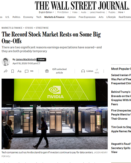 Per i nostri lettori, sarà di grande interesse leggere, a proposito di questo specifico tema, ovvero le aspettative per gli utili, un lavoro di analisi (meno parziale e più fondato) condotto da un giornalista del Wall Street Journal la settimana scorsa. Recce’d lo ha individuato e tradotto per voi.