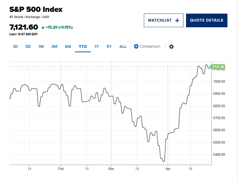 Sui social e sui media ha fatto molto rumore il recupero successivo alle settimane di guerra alla Borsa di New Yoirk (seguita ovviamente dalle Borse europee). Lo vediamo nell’immagine sotto.