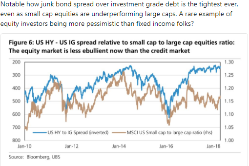 In un contesto nel quale si rivedono le stime sia per la crescita economica, sia per l'inflazione, e mentre il Titolo di Stato USA fa un test per il livello del 3% di rendimento a scadenza, non stupisce che le Banche Centrali esprimano preoccupazione per il fatto che i rendimenti delle obbligazioni corporate stiano ai livelli più bassi di sempre (prezzi ai massimi storici).