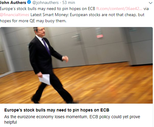 Last year’s tax cut, which took effect in the first quarter, explains some of this but these earnings are above and beyond. How can they coexist with Europe where (with fewer companies reporting so far), the Stoxx 500 is on course for a rise of only 0.7 per cent (an outright fall excluding energy companies). Most companies to report so far have managed to exceed expectations.