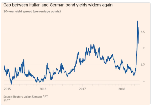Gli spikes che si registrano a ripetizione in questo 2018 sono la conseguenza diretta della compiacenza: come racconta il grafico qui sotto, lo stesso prestigioso Istituto IFF (ovvero gente che non fa altro nella vita che studiare i dati) è sorpreso dal fatto che "il consenso sull'Italia al nostro meeting di primavera era POSITIVO". Poche settimane fa.