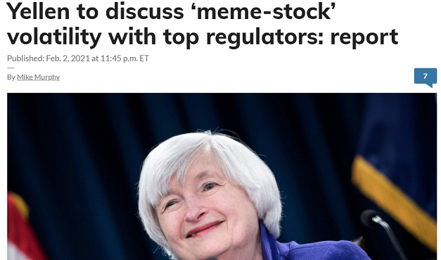 Ricordate Yellen esattamente 24 mesi fa (immagine), quando convocò una riunione di urgenza sul tema dei cosiddetti “meme-stocks”? Quella riunione produsse ZERO risultati concreti.