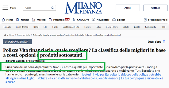 Poi però si scrive anche di “prodotti sottostanti”: voi, che investite sulle Polizze Vita, ci avete mai pensato? Voi lo sapete, quanto costano a voi i “prodotti sottostanti”?