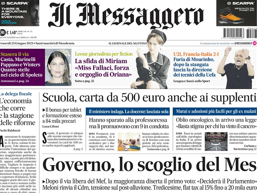 (23/06 07:55) Rassegna stampa (3) Per tutti i quotidiani vicini alla coalizione che è al Governo, la notizia non è da prima pagina: e infatti, non c’è.Per il Messaggero di Roma, la notizia va a centro pagina, sotto la scuola. Valter BuffoJune 23, 2023 Facebook0 Twitter LinkedIn0 Reddit Tumblr