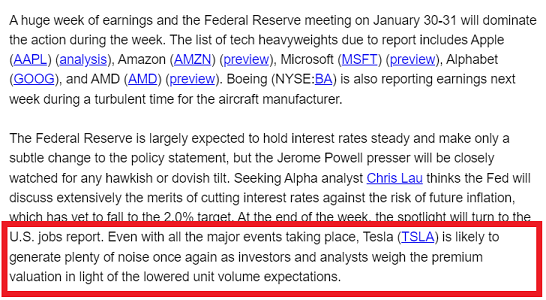Leggete questo commento alla settimana che sta per iniziare: qui si dice che, nonostante i moltissimi risk-events previsti per la settimana che inizia con il 29 gennaio 2024, durante la prossima settimana … sui mercati si dovrà tenere conto ancora dei numeri di Tesla dello scorso giovedì.
