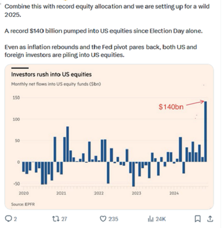 Intanto, per voi lettori, vale la pena di chiedersi: i 140 miliardi di flussi in entrata sui Fondi Comuni azionari USA, tra novembre e dicembre, che fine hanno fatto?
