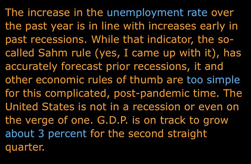 Persino Claudia Sahm, proprio quella della “Sahm’s Rule”, il tema più discusso sui mercati nell’ultimo trimestre.