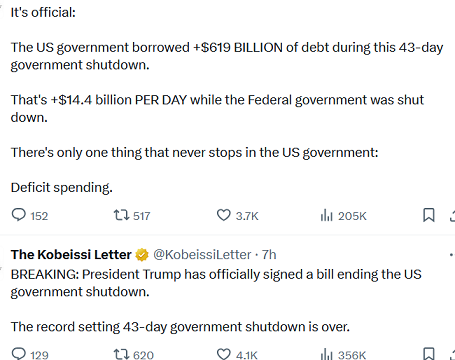 (13/11 08:55) Guardiamo un po' ai fatti (2) E’ finito lo shutdown.Ma durante lo shutdown, non si è fermato tutto.Alcune cose hanno continuato ad andare avanti.Questo come incide?Adesso vedremo dai dati. Valter BuffoNovember 13, 2025 Facebook0 Twitter LinkedIn0 Reddit Tumblr