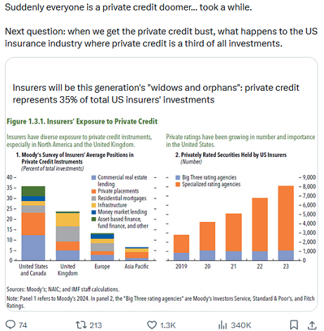 E improvvisamente, tutti sono pessimisti sul credito privato, sul private equity, sul venture capital, sui finanziamenti diretti e sulla cosiddetta “economia reale”.