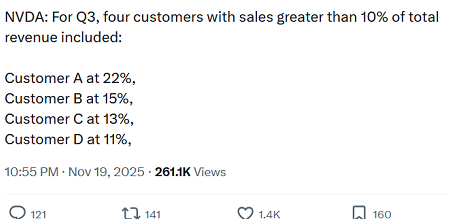 (20/11 05:05) La notte di Nvidia e le tante domande che tutti si fanno (4) 62% di fatturato con quattro Clienti.Non è che si stanno rigirando i soldi l’uno con l’altro, vero? Valter BuffoNovember 20, 2025 Facebook0 Twitter LinkedIn0 Reddit Tumblr