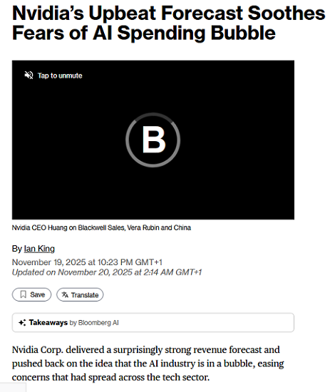 (20/11 05:15) La notte di Nvidia e le tante domande che tutti si fanno (3) Quindi il mercato con questi numeri ha risolto i suoi dubbi in merito alla bolla? Non è che sono aumentati?. Valter BuffoNovember 20, 2025 Facebook0 Twitter LinkedIn0 Reddit Tumblr