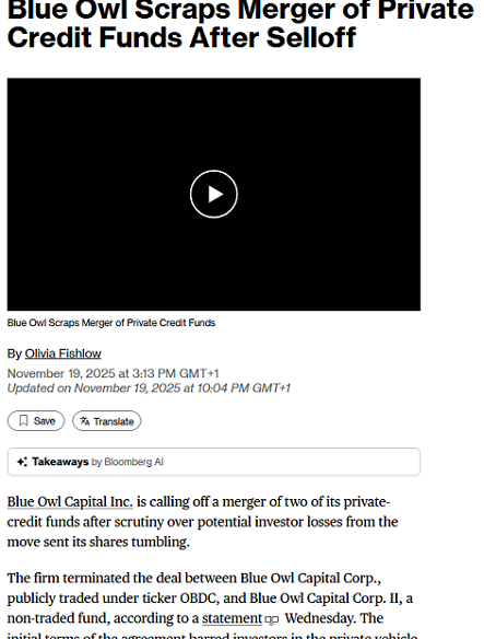 (20/11 14:10) I gufi? Adesso sono blu (1) Blue Owl?Ma chi lo conosce?Non mi riguarda.Oppure forse mi riguarda?Quale è, la verità? Valter BuffoNovember 20, 2025 Facebook0 Twitter LinkedIn0 Reddit Tumblr