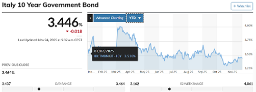 Il prezzo del vostro BTp decennale oggi è lo stesso del 1 gennaio 2025.