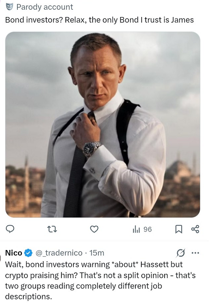 (04/12 10:20) Asset (allocation) e Hassett (1) Quando leggete Bond, voi pensate a James Bond?Oppure pensate ai vostri BTp che avete comperato?E quando leggete Hassett, voi ci pensate, alla vostra asset allocation? Valter BuffoDecember 4, 2025 Facebook0 Twitter LinkedIn0 Reddit Tumblr