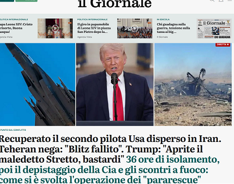 A tutta pagina, questo è il titolo di un quotidiano italiano nel giorno di Pasqua 2026.