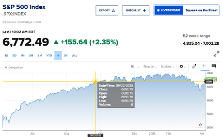 Dopo il grande rimbalzo di oggi, l’indice di Borsa più grande del Mondo è tornato al livello del mese di settembre 2025. Lo leggete in questo grafico